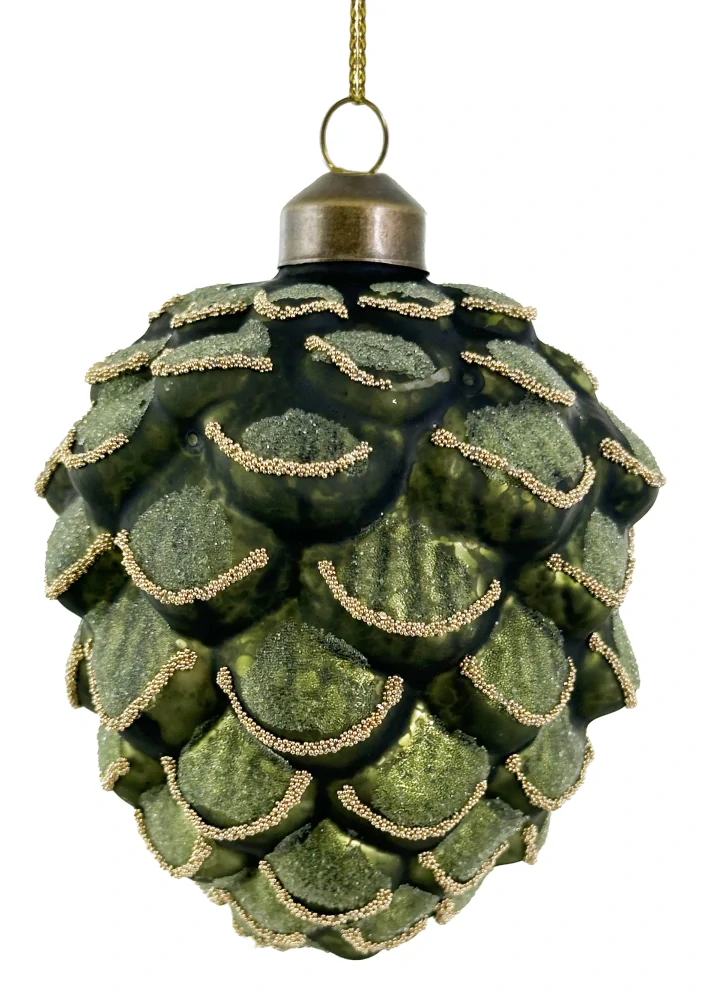 - Vánoční ozdoba, Skleněný kulatý kužel v antickozelené barvě s korálky 9cm